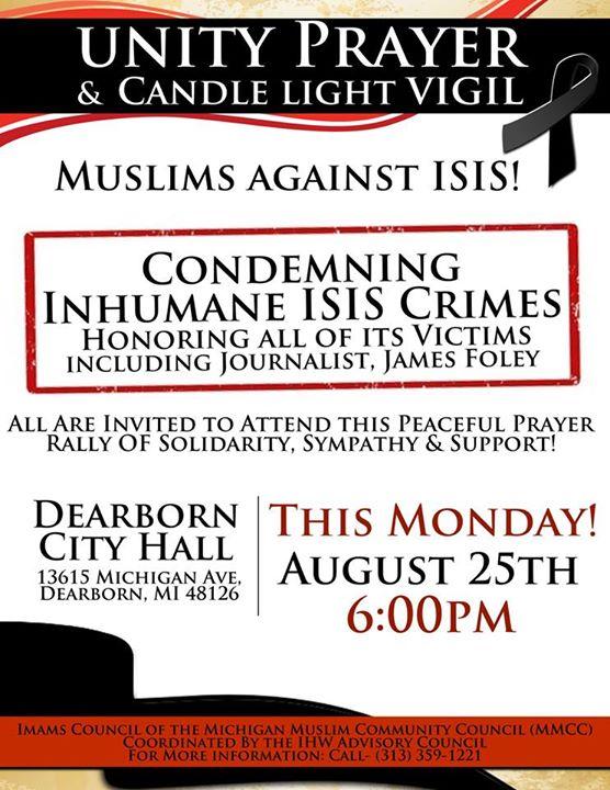 Twitchy "Organizers promoted a “peaceful prayer rally” on the steps of Dearborn City Hall Monday evening “condemning inhumane ISIS crimes” and honoring journalist James Foley."